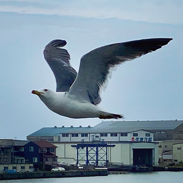 間近で見るカモメはクールな表情ながら、飛行することの意志のようなものがうかがえる。ずっと眺めていても飽きなかった。