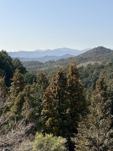 今回あらためて感じたのは、早春の低山の歩きやすさだった。夏の低山は暑さと虫が大変だが、この時期は違う。気温はほどよく、虫もまだ少ない。木々の葉が少ないため、遠くの山並みもよく見える。杉林の尾根道は静かで、歩いていると自然に呼吸が整ってくる。都市近郊の山とはいえ、数時間山の中を歩くと、日常とは少し違う時間の流れを感じることができる。