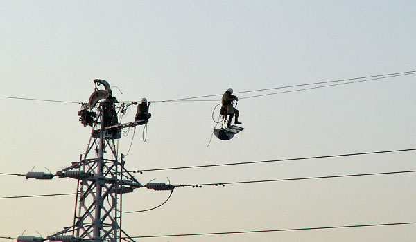 夕暮れ空を渡るヒト2004年10月17日 夕方、自宅近くの道を歩いていると、遠くの高圧電線になにやら物体が引っかかっているのを発見。誰か凧でも引っ掛けたのかな、と思いながら、ずんずん近づいていくと、凧の位置が先ほどよりも、微妙にズレています。 よくよく目を凝らすと、なんとそれは高圧電線のメンテナンスをしているヒトでした。夕暮れ空の中、もくもくと作業を続けるスタッフの姿は、なにやら印象派の絵画のようでした。本当にご苦労様です。 暮らし空Posted by Asanao