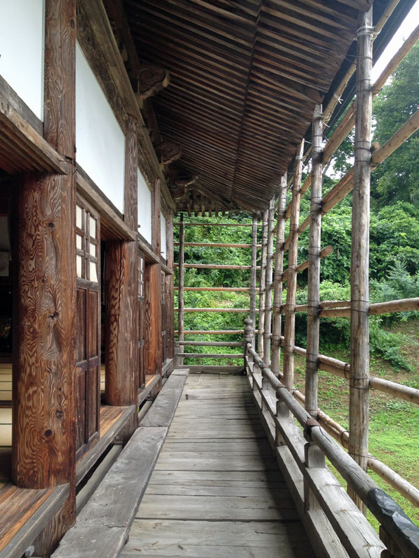 小説『月山』では、本堂の雪囲みの木組みに、冬になると部落の若い衆がムシロを張ってくれる云々というシーンがあった。堂宇の濡れ縁に出ると一転して小説『月山』の世界が広がった。