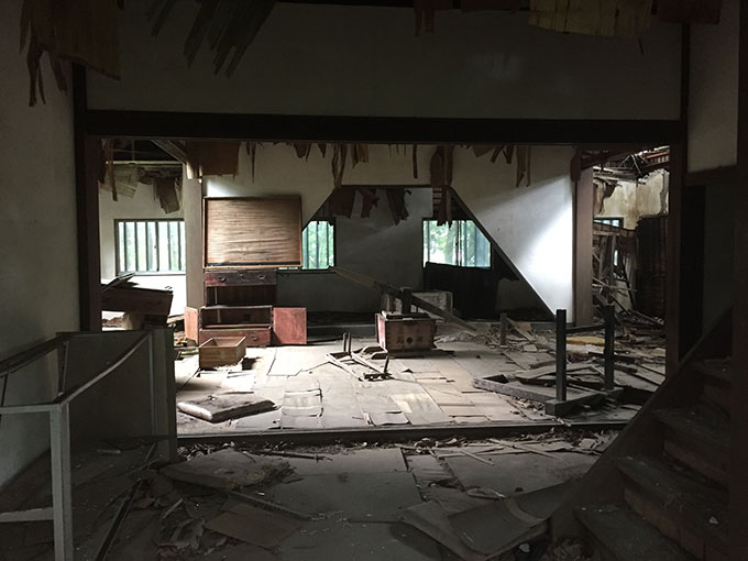 一階には、昔の消防用具や箪笥等、かつての展示物らしいものが放置されていた。ひどい荒れようだ。